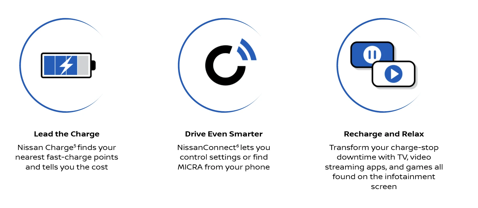 5 Nissan Charge is available to UK residents 18+ only. To use Nissan Charge, download the free Nissan Charge app, create an account and register your payment details and Nissan Charge card. Requires a smartphone with compatible iOS or Android operating system and a SIM card with a data plan from a mobile service provider. Use of the Nissan Charge app is subject to mobile network coverage. Only use the Nissan Charge app when safe to do so in accordance with the Highway Code. The Nissan Charge app is owned and operated by Octopus Electroverse. For full T&Cs, see https://electroverse.com/legal/terms